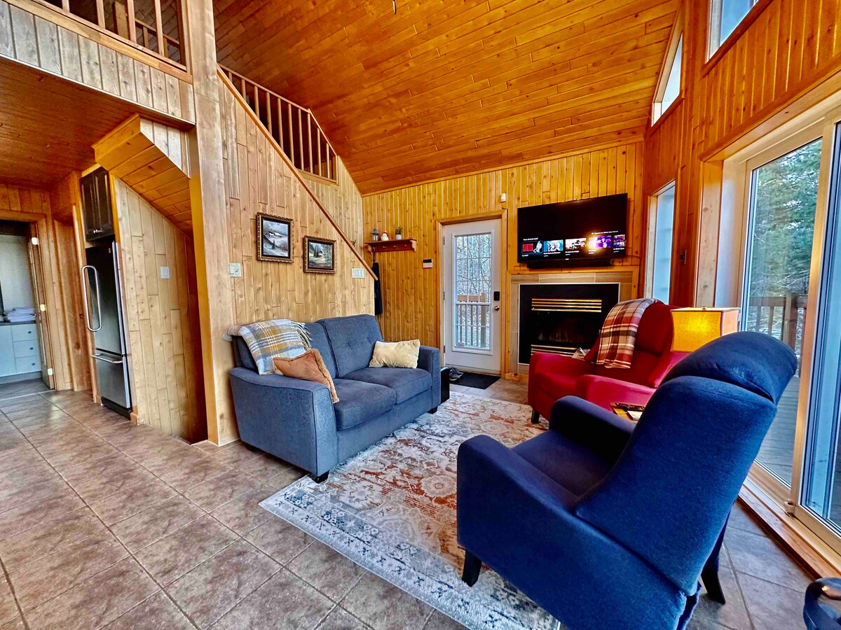 Bienvenue à La Khabine ! Ce chalet confortable et moderne est équipé de tout ce dont vous avez besoin pour vous détendre et vous connecter avec la nature. Dégustez un verre de vin au son d'un feu crépitant dans la cheminée à bois. Admirez la vue sur la forêt à travers les baies vitrées environnantes. Détendez-vous dans le sauna extérieur privé en baril de cèdre. Les produits de soins naturels, le bois de chauffage, le savon à linge et le Wi-Fi haut débit sont tous gratuits. Nous espérons que vous aimerez notre petite cabane de fenêtres autant que nous :)
