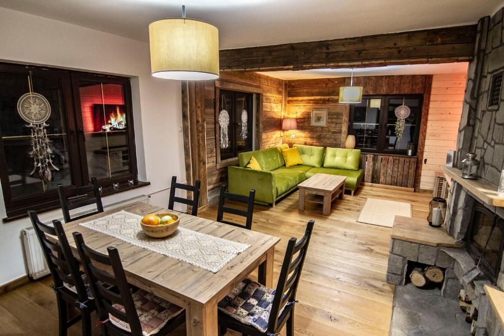 Une maison atmosphérique avec une cheminée dans une merveilleuse zone de spruces. Le chalet à l'étage dispose de deux chambres dans une avec deux lits simples, l'autre dispose d'un lit double. Au rez-de-chaussée se trouve un salon, une salle d'eau avec douche et sèche-cheveux, une kitchenette avec cafetière. Nous avons une place pour les barbecues, les denses de jardin et un hamac. Nous sommes très proches du centre, des magasins, des restaurants, du terrain, de la rivière Olza, des sentiers de randonnée et de vélo, des pistes de ski, du parc à corde, etc.