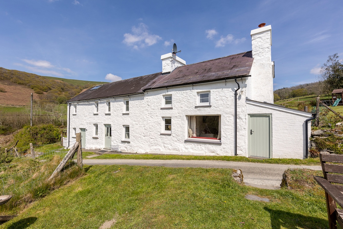 Remontez le temps dans notre joli chalet d'ancien mineur de plomb au bout d'une terrasse calme et pavée à Rhandirmwyn avec une vue magnifique sur la vallée de Towy. Idéal pour l'observation des oiseaux, la marche en colline, le vélo, la baignade ou simplement pour se détendre. Profitez du paysage depuis le jardin avec votre tasse du matin. Le ciel est magnifique par une nuit claire, vous verrez la voie lactée et les étoiles filantes ! Jetez un coup d'œil à notre compte Instagram @cottageinrhandirmwyn pour vous faire une idée du chalet et de la région.