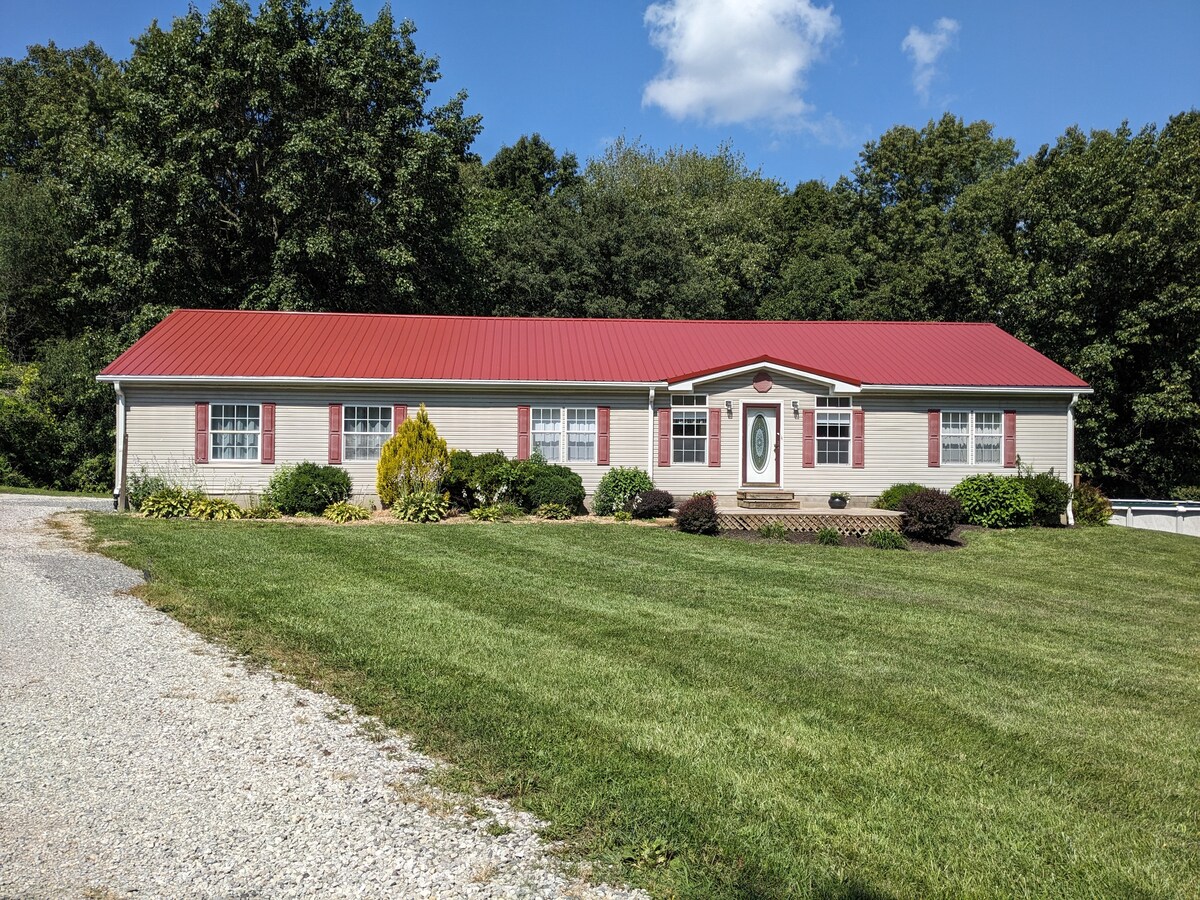 Idéalement située le long de la Route 15, juste à l'est de Mt Vernon, dans l'Illinois, cette maison de 3 chambres et 2 salles de bain est suffisamment spacieuse pour accueillir toute la famille pour une nuit ou un week-end prolongé ! Deux salons offrent beaucoup d'espace pour tout le monde lors des visites. L'ÉNORME jardin est totalement privé et absolument magnifique ! Apportez vos tentes si certains veulent camper dans le parc comme dans le jardin. Profitez de la vue paisible sur l'étang et observez les cerfs !