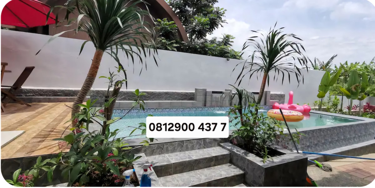 Détendez-vous, détendez-vous ou même travaillez. Cette petite villa est un lieu pour tous. Niché aux pieds du mont Salak avec vue sur le mont Pangrango et notre propre jardin. Votre solution pour une courte escapade loin de l'agitation de la ville, à 70 minutes de Jakarta. *Fasilitas :* 1. Piscine (vue semblable à Ubud) 2. Balcon (Gunung Pangrango + Sunrise View) 3. Jeux de société (catur, uno, stacko, etc.) 4. TV Netflix Youtube 5. Wifi jusqu'à 5 Mbit/s 6. Jardins 7. Cuisine 8. Terrasse d'observation