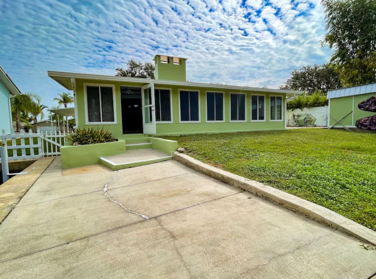 UNE MAISON 100 % PRIVÉE, énergie solaire écologique, un chargeur VE de niveau 2 et une PISCINE ENTIÈREMENT CHAUFFÉE. Explorez la vieille Floride avec les attractions de la côte naturelle qui sont très proches de cet endroit. Explorez la plupart des attractions de plein air du centre de la Floride, à 45 min - 1 h de route. Volets anti-ouragan extrêmes pour une maison sûre. Détendez-vous au bord de la PISCINE ENTIÈREMENT CHAUFFÉE. Récemment rénové avec un espace de couchage pour 10 personnes. 3 chambres / 2 salles de bain avec une salle de séjour / 4ème espace de couchage avec 1 futon dans la chambre principale. Le luxe à petit prix.