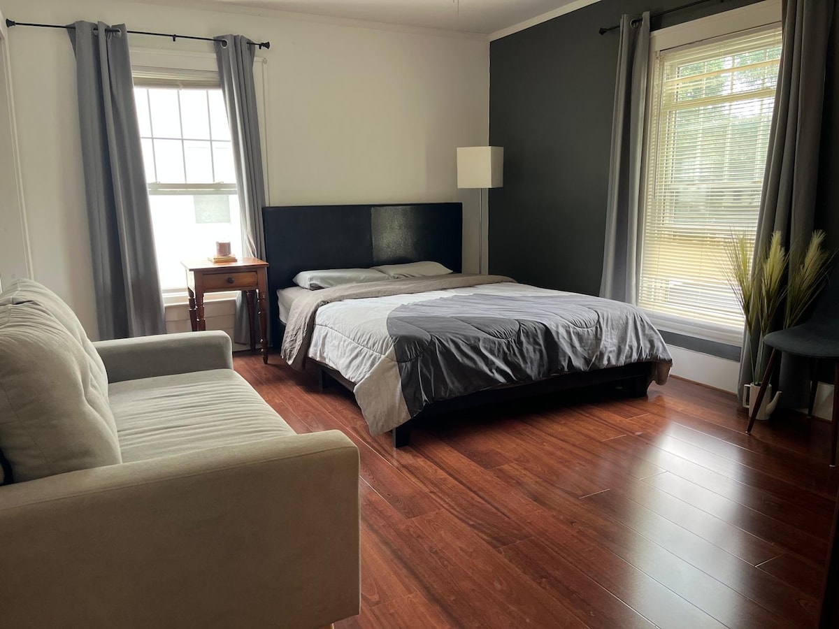 Entrez dans cette maison des années 1920 entièrement rénovée, qui allie charme d'origine et confort moderne. À quelques pas du campus, cette retraite de 3 chambres et 2 salles de bain dispose de planchers de bois franc, d'un bureau spacieux et d'une terrasse arrière confortable avec des guirlandes lumineuses et des sièges. Profitez d'une cour clôturée privée, parfaite pour se détendre après une journée à explorer la ville. Calme, accessible à pied et plein de style : votre séjour idéal vous attend.