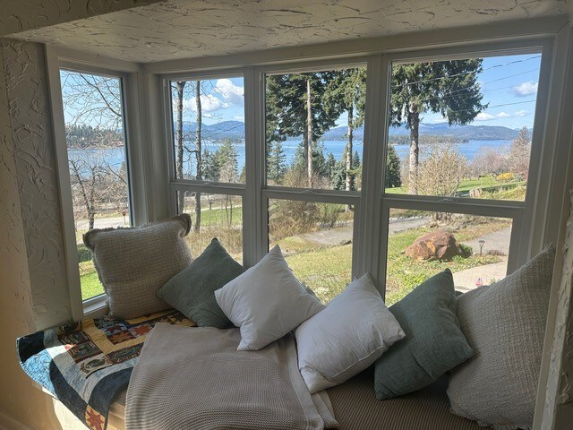 Retraite confortable en forme de A, épinglée au sommet d'un rocher avec une vue imprenable sur le lac Pend Oreille et les montagnes de la région de Sandpoint. À seulement 4 miles du centre-ville et à 5 minutes en voiture de la navette Schweitzer. Ce studio intime avec loft est un havre de paix pour les couples. Détendez-vous dans un lit queen size, préparez des repas dans la kitchenette en granit et profitez d'une douche personnalisée avec un siège de toilette chauffant et un bidet. Profitez d'autres équipements modernes comme une connexion Wi-Fi haut débit et la climatisation. Intimité au bout de la route.