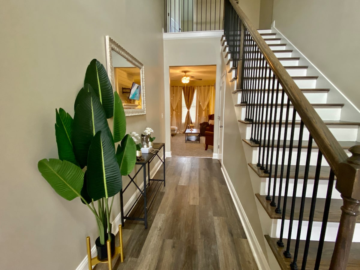 Cette maison de ville de 2 chambres et 1,5 salle de bain est située à environ 20 minutes d'Atlanta dans la ville pittoresque de Jonesboro ; la maison vous accueillera, vous et vos invités, avec beaucoup d'espace. Avec un accès rapide à l'autoroute, vous êtes à deux pas des restaurants, des magasins, des gymnases et du centre-ville. L'aéroport international Hartsfield Jackson est idéalement situé à seulement 15 minutes. Si vous devez explorer la ville, Truist Park, State Farm Arena, GA Aquarium et Mercedes Benz Stadium sont à proximité ou assistez à un concert au Fox Theatre !