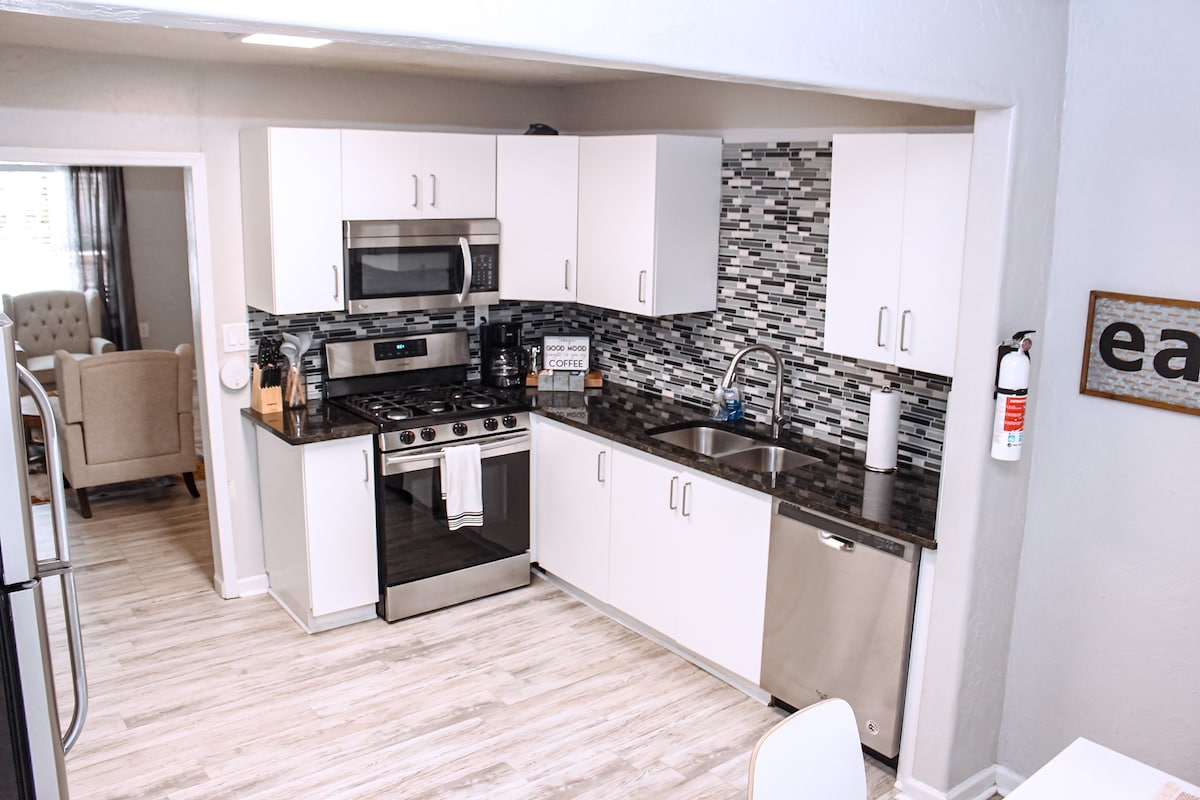 Boum ! Notre maison nouvellement répertoriée est prête pour VOUS ! Bienvenue dans notre Norman Escape entièrement rénové ! Nous avons hâte de vous accueillir dans notre charmante maison de 3 chambres et 2 salles de bain complètes. La maison est située à moins de 1,5 miles du stade et à moins de 2 miles de Campus Corner. Notre espace est idéal pour les visites universitaires, les événements sportifs et les week-ends des parents. Sooner !