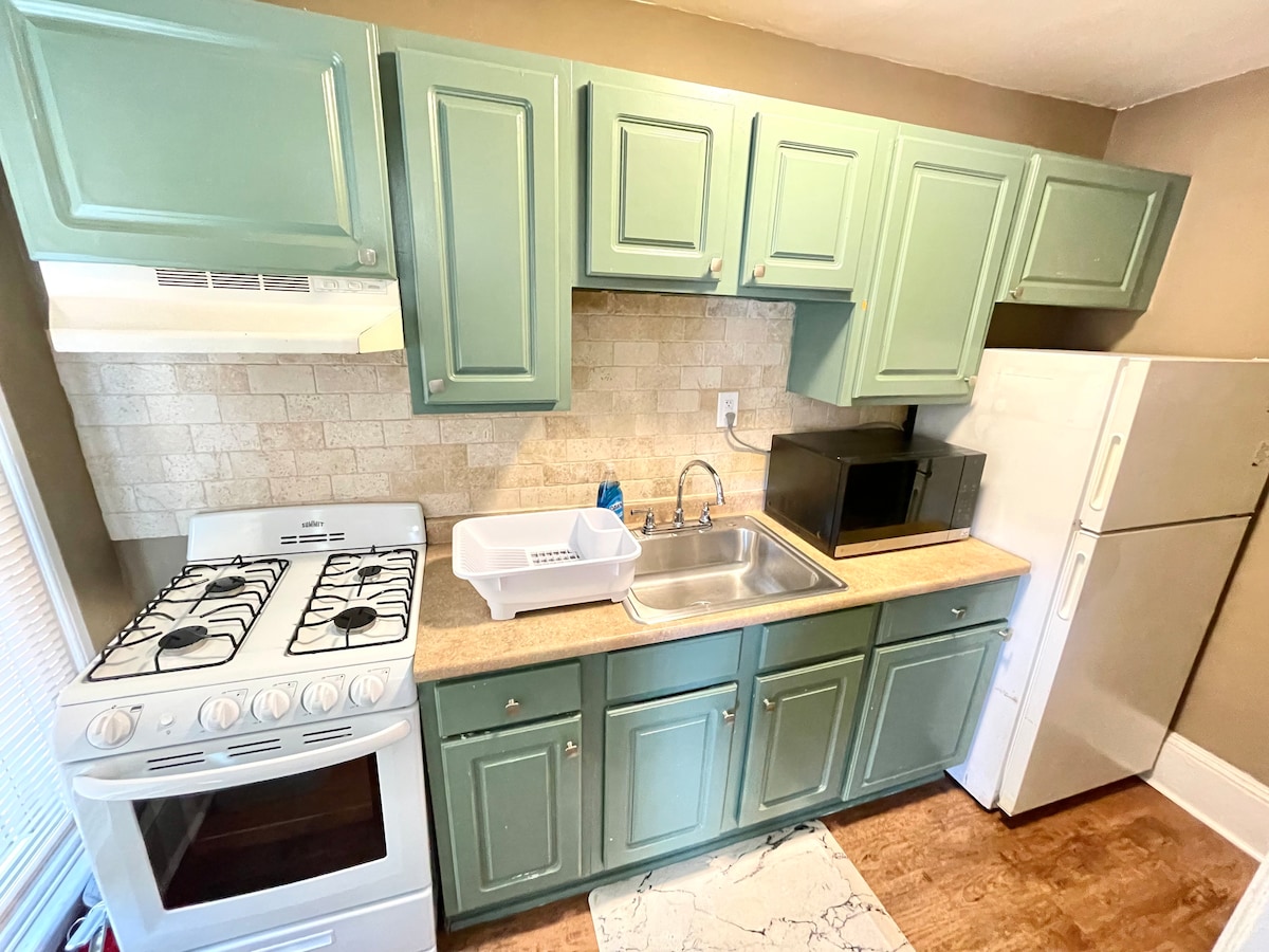 Maison récemment rénovée avec plusieurs logements située au centre d'un quartier de banlieue. Cet appartement au 1er étage est un appartement de 2 chambres/1 salle de bain avec une entrée privée. Tout ce qu'il vous faut pour un voyage d'affaires, une escapade ou un séjour plus long. Le logement dispose d'une cuisine complète, d'un salon avec un canapé-lit. La cuisine est équipée d'appareils électroménagers en acier inoxydable, de vaisselle, d'ustensiles de cuisine et de petits appareils électroménagers. Il y a une connexion Wi-Fi rapide, une entrée sans clé/arrivée autonome, des téléviseurs intelligents dans chaque chambre et une laveuse et une sécheuse dans l'unité.