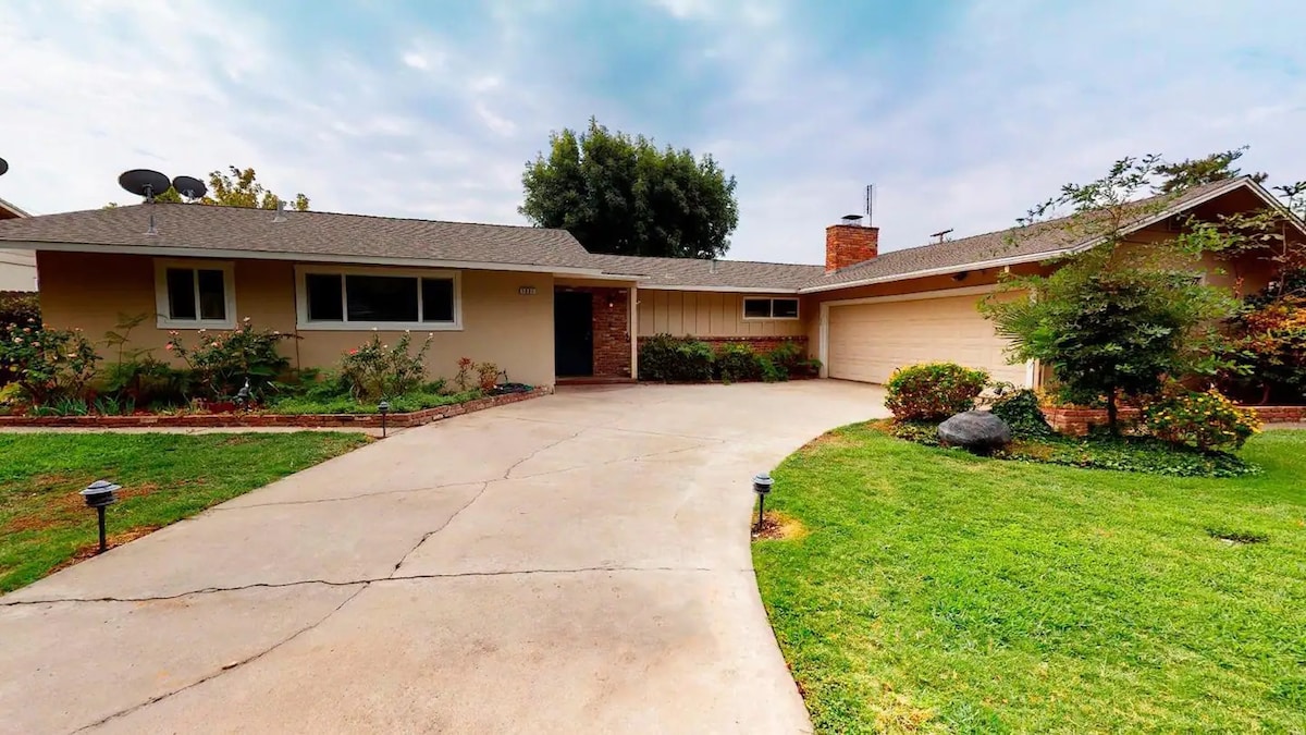 Cozy home nestled in a quiet residential neighborhood. This updated space will make you feel comfortable and connected with fast wi-fi, queen mattresses, and 1960s charm. The fully-equipped kitchen, dedicated work space, and tastefully designed rooms make for a convenient and peaceful stay. Old Town Clovis, Fresno State, Clovis High and Clovis Community Medical Center are all within a few minutes' drive. Make this your pit stop before your Yosemite or Sequoia National Park adventure.