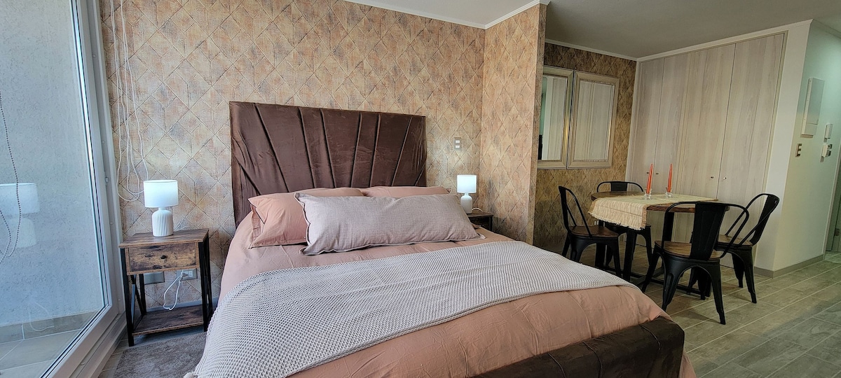 Découvrez un charmant studio moderne dans un emplacement privilégié au centre de Santiago, idéal pour les couples ou les voyageurs à la recherche de confort et de commodité. Il dispose d'un lit double confortable, d'une cuisine entièrement équipée, d'une salle de bain moderne et d'une terrasse confortable parfaite pour se détendre en profitant de la vue sur la ville. À quelques pas des restaurants populaires, des transports en commun et des principales attractions touristiques. Réservez maintenant et vivez la meilleure expérience urbaine à Santiago!
