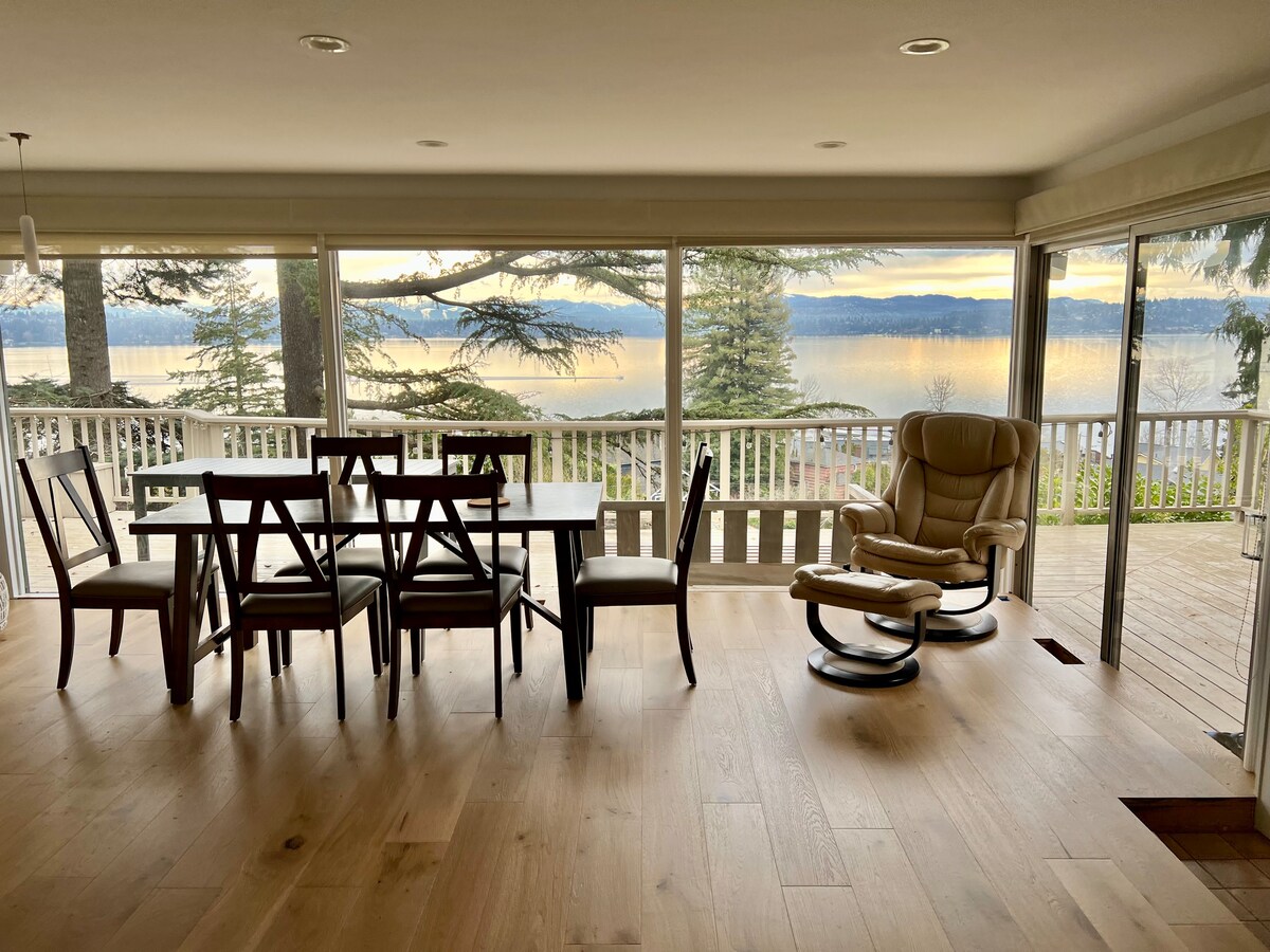 Grand appartement-terrasse de luxe avec 1 lit et 1 salle de bain dans le centre-ville de Kirkland. Entièrement rénové, aucune dépense épargnée. À distance de marche du lac WA, des boutiques, des restaurants, des bars, du campus G - tout ce que Kirkland a à offrir ! Comptoirs en granit, appareils électroménagers en acier inoxydable, bois durs et carrelage. Espace repas extérieur privé et barbecue. Chambre immense avec lit King Size neuf, penderie, lave-linge et sèche-linge privés. Parfait pour des séjours courte ou longue durée. Vue filtrée sur le lac avec de beaux couchers de soleil à l'ouest ! Wi-Fi gratuit, câble, 2 téléviseurs, parking.