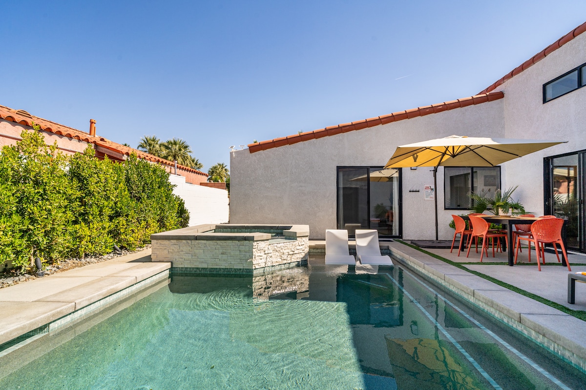 Twin Palms : maison des années 50 avec piscine privée, spa et vue