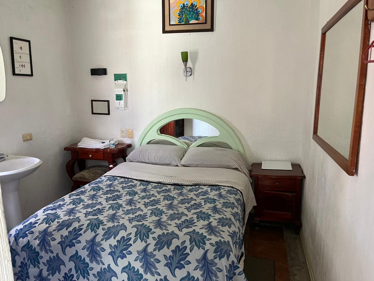Chambre récemment rénovée au cœur de Xalapa. Située au rez-de-chaussée et dans un hôtel avec réception pour l'enregistrement et service 24/7. Pour la sécurité de tous les clients, une pièce d'identité est demandée à l'entrée et restituée à la sortie. Zone sécurisée et gratuite pour se garer dans la rue. Nous sommes à un pâté de maisons du parc Juárez et à 90 mètres de l'OPLE Veracruz.
