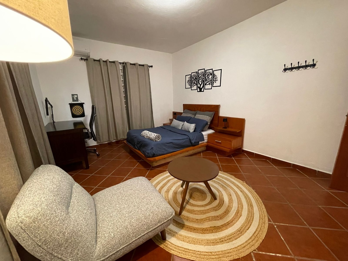 Suite Exécutive équipée, Internet par WiFi, Smart TV 40", parking, accès facile depuis tous les quartiers de la ville, avec laveuse-sécheuse, réfrigérateur complet, cuisinière à gaz et four à micro-ondes. Entrée indépendante, grandes fenêtres qui donnent une ventilation et un éclairage naturels, mais aussi avec des rideaux en tissu black out pour le passage de la lumière pour un bon repos. La consommation d'électricité quotidienne est de 20 kW. Si elle est dépassée, son coût par kW est de 4,50 $. La lecture est prise au début et à la fin.