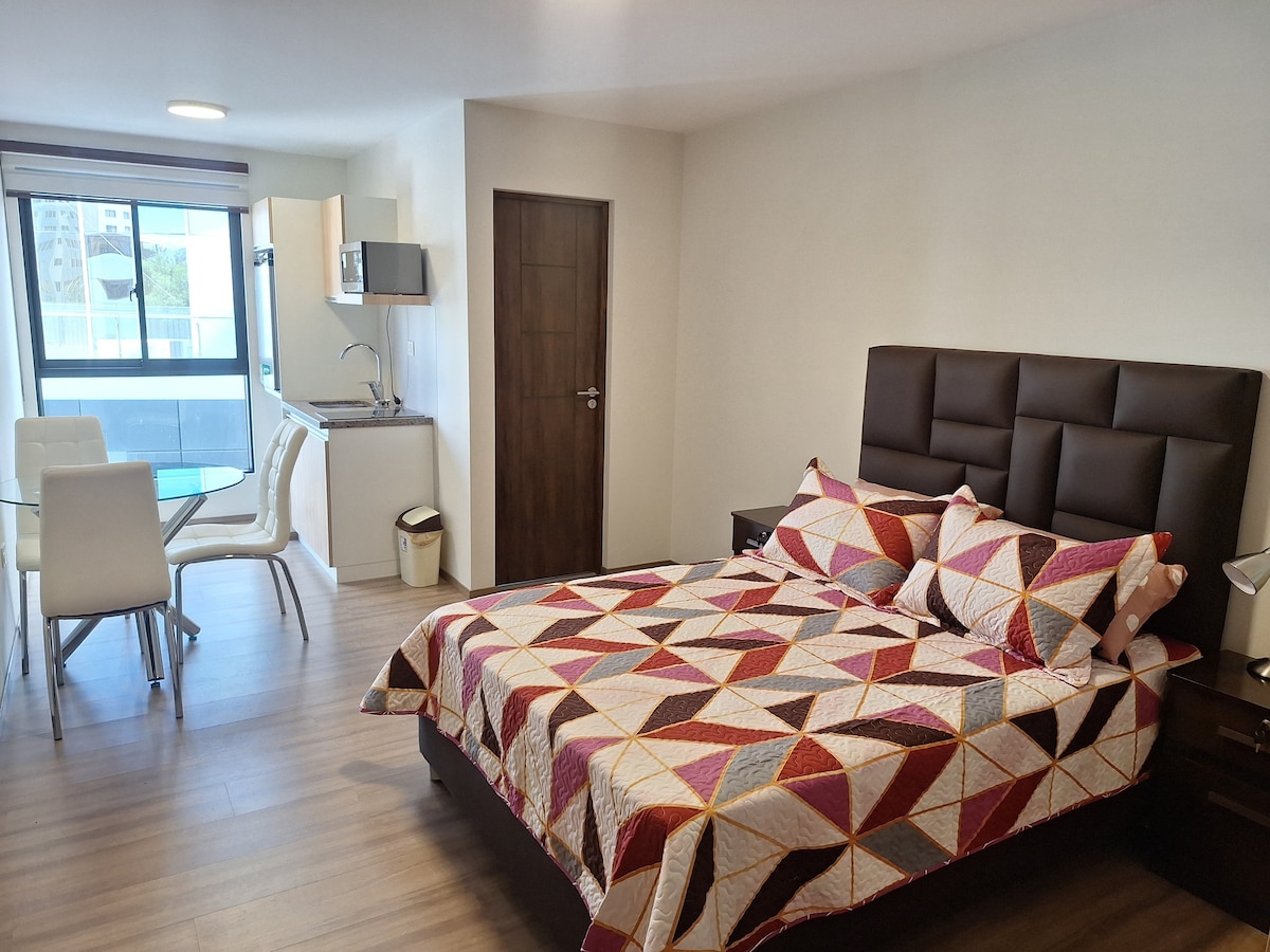 Cet élégant appartement central vous offre tranquillité, confort et un éclairage parfait, un quartier exclusif et sûr de la ville, le Prado Cochabamino. À quelques pas, vous trouverez des distributeurs automatiques de billets, des pharmacies, des supermarchés et des transports en commun qui vous emmèneront pratiquement n'importe où dans la ville, vous aurez tout ce dont vous avez besoin à portée de main.