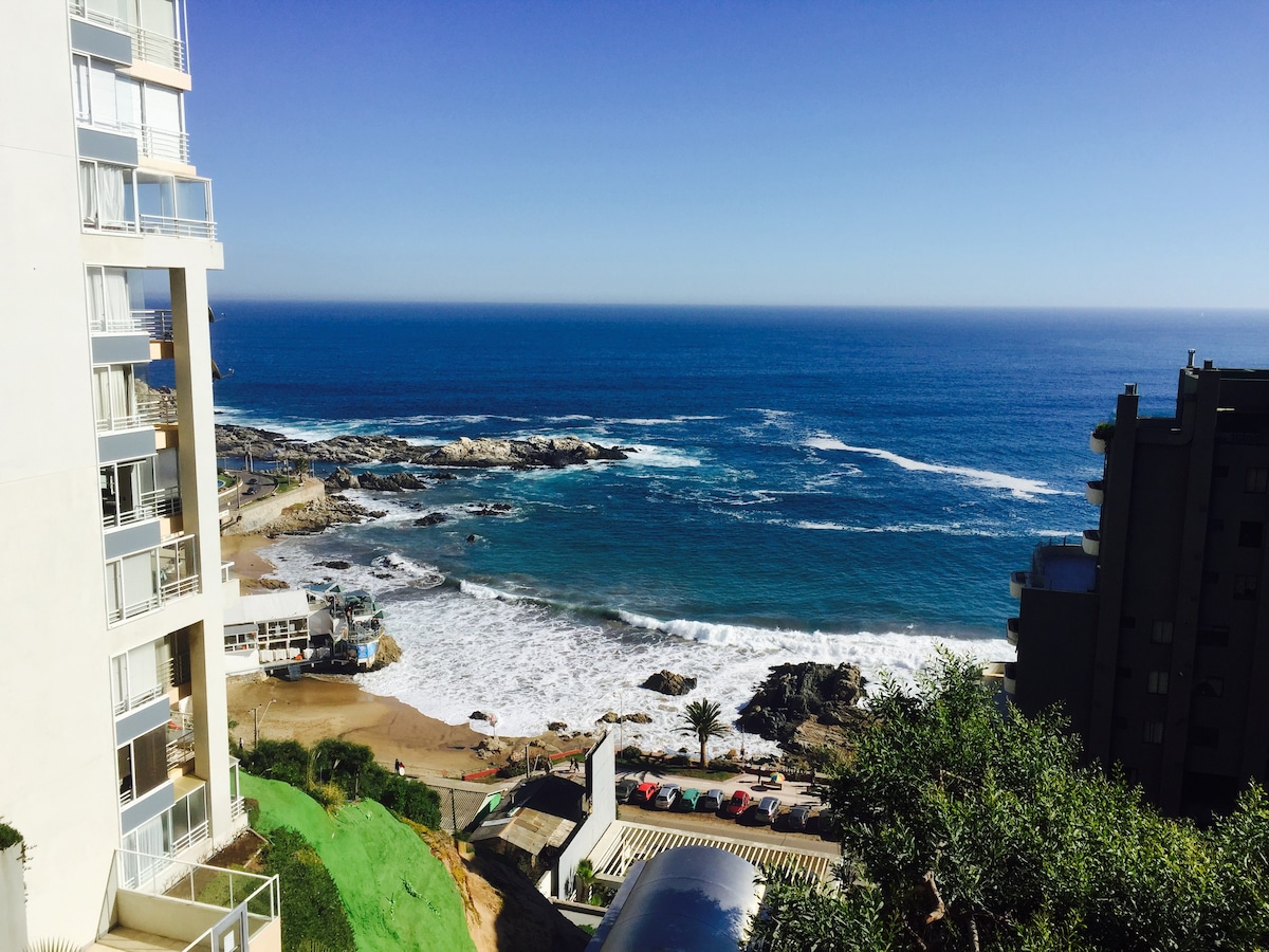 Appartement situé en face de la plage de Cochoa à Reñaca, vue imprenable (première ligne face à la mer), terrasse, parking couvert privé, piscine adultes, piscine enfants, piscine chauffée, salle de sport. 3 chambres (principale en suite avec lit King), 2 salles de bains, Smart TV 4K 55'', TV câble HD, WiFi fibre 600 Mbps, cuisine entièrement équipée, plan de travail vitrocéramique, lave-linge, tout l'équipement est électrique. Ascenseurs. Funiculaires pour descendre à la plage.