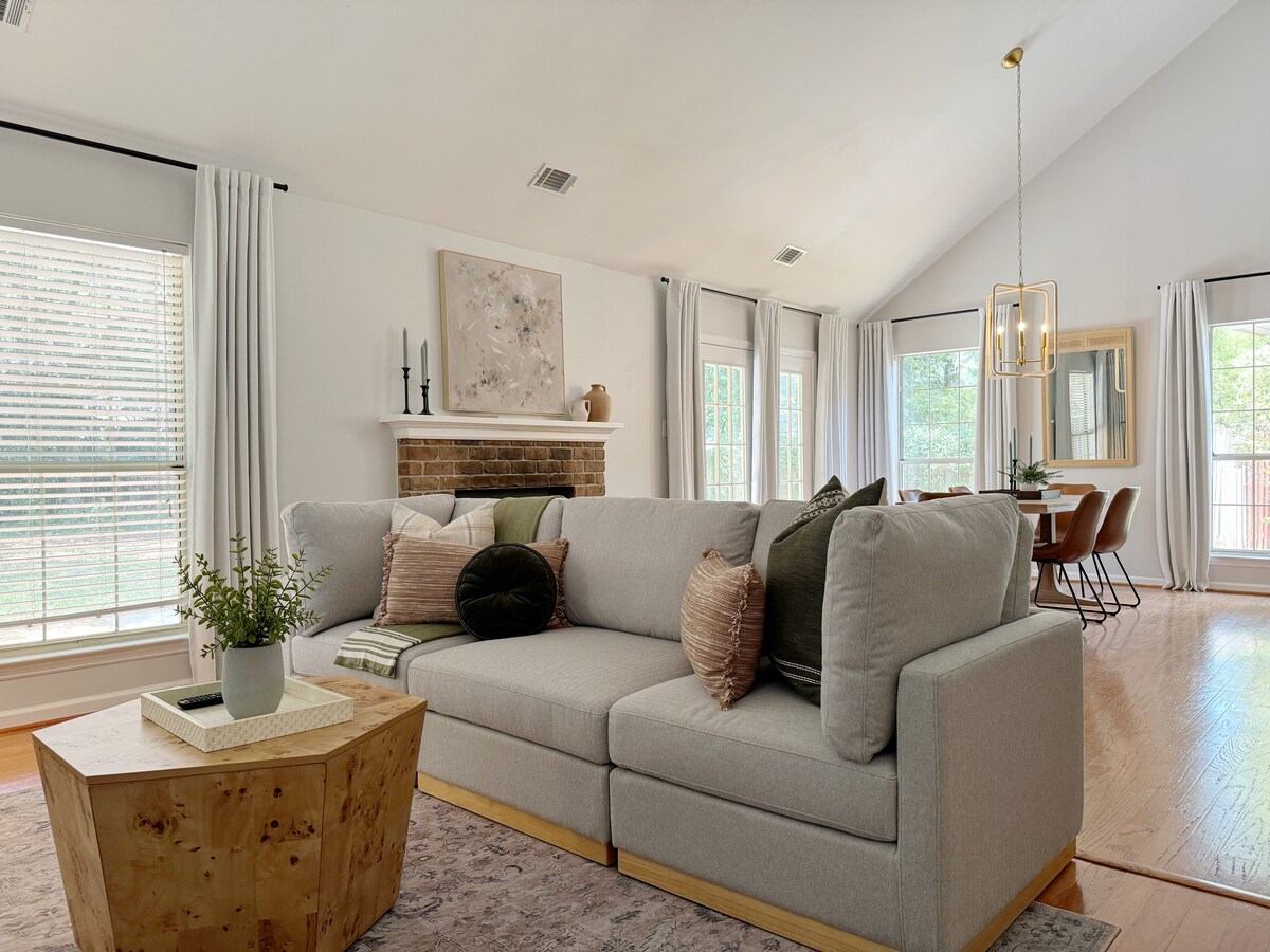 Bienvenue dans notre charmant chalet récemment rénové niché dans un quartier paisible à mi-chemin entre les superbes plages et le cœur animé de Savannah, Géorgie. Notre maison offre le mélange parfait de confort, de commodité et de tranquillité pour votre escapade. Points forts : - Trois chambres et deux salles de bain - Nombreuses options pour dormir : deux lits « king size » et deux lits « queen size » - Téléviseurs intelligents et WiFi rapide - Parking pratique pour trois voitures - Cour arrière clôturée adaptée aux chiens - Quartier sûr