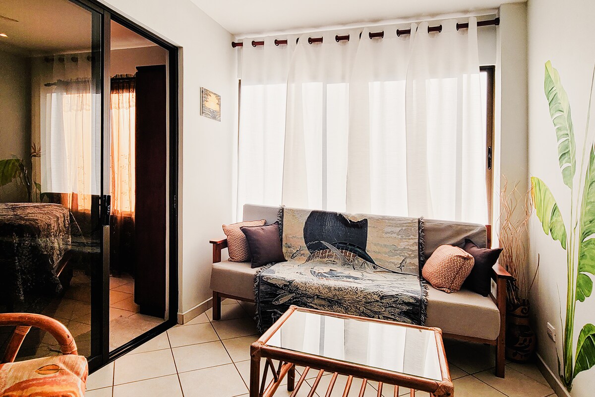 Profitez au maximum de vos vacances au Costa Rica en restant dans ce condo en bord de mer situé à Surfside, Playa Potrero. Profitez de votre café du matin en regardant les pélicans plonger dans la baie de l'océan. Admirez de magnifiques couchers de soleil tous les soirs depuis votre propre terrasse privée. Il dispose d'un aménagement ouvert, d'une terrasse spacieuse en bord de mer, d'une cuisine complète et d'une grande chambre principale avec un lit king size. La deuxième chambre est un bureau avec un canapé-lit gigogne.