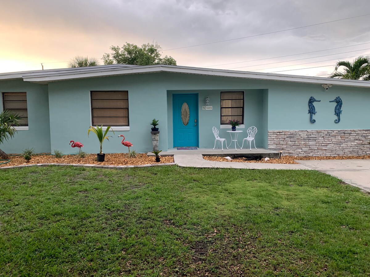 Découvrez votre escapade parfaite à seulement 20 minutes de la plage ! Cette charmante maison offre deux chambres – l'une avec un lit queen, l'autre chambre a deux lits jumeaux. Il y a aussi un matelas pneumatique. Cuisine entièrement équipée, intérieurs décorés avec goût et espaces rénovés assurent un séjour confortable. Profitez d'une connexion Wi-Fi, d'un grand parking, d'une cour arrière clôturée et d'un charmant porche. Idéalement situé à 20 minutes de la plage et de Port Canaveral. Votre retraite idéale vous attend !
