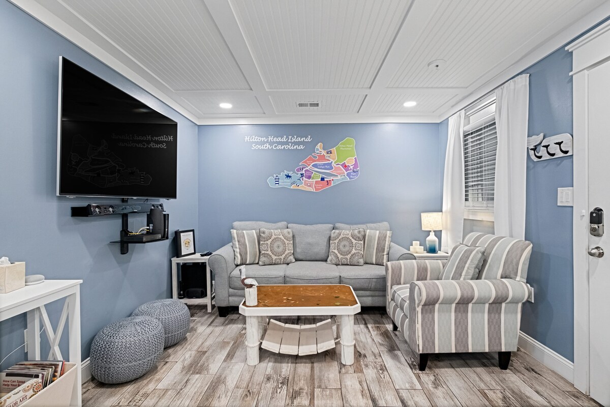 Rénové de haut en bas! 2 chambres, 2 salles de bain et une cuisine complète! Situé dans le centre de l'île de Hilton Head, à proximité de toutes les merveilleuses pistes cyclables, des restaurants, des magasins et du célèbre golf ! Dans une communauté fermée pleine d'équipements : - Promenade vers la plage 🏖️ 🌊☀️🐚 - 2 piscines extérieures (1 chauffée) 🤿 - Piscine intérieure (chauffée) ☔️ - Bain à remous ; - Sauna 🧘 - 6 courts de tennis et 2 terrains de pickleball ; 🎾 🏓 - Bar et barbecue en bord de mer 🍻 - Bar et barbecue au bord de la piscine ⛱️ - Petit centre de remise en forme 💪🏋️ - Volley-ball de sable 🏐