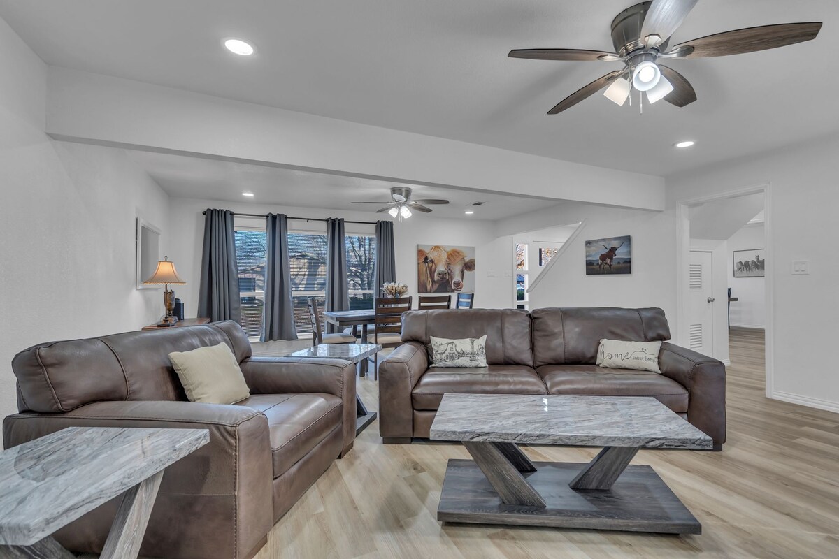 Bienvenue dans votre maison tendance des années 1930, à quelques pâtés de maisons du centre-ville historique de McKinney. Explorez les boutiques, les restaurants de chefs et les cafés locaux. À l'intérieur, de hauts plafonds, des détails originaux et des meubles soigneusement choisis côtoient des éléments modernes. La cuisine entièrement équipée facilite les repas, et le porche est parfait pour le café du matin ou le vin du soir. L'espace de vie ouvert est idéal pour les rassemblements. Trois chambres assurent des séjours reposants, combinant caractère et confort pour une maison loin de chez soi parfaite.