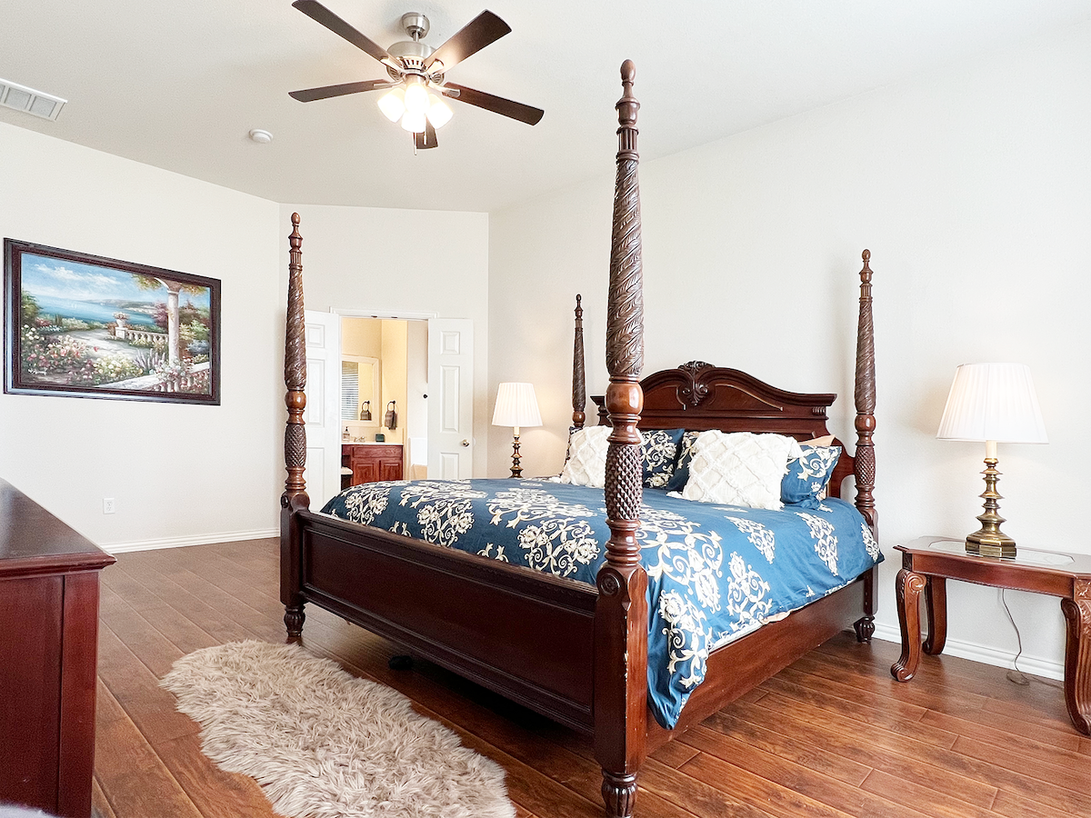 Chambre avec salle de bain privée complète et accès lave-linge/sèche-linge. Lit king size avec plusieurs oreillers. Une commode ouverte et un placard spacieux. Piscine d'eau salée à utiliser. Internet, Netflix, Prime Video. Espace bureau/salle à manger : salle à manger formelle convertie avec des portes à utiliser pour les repas ou le travail à domicile. Réfrigérateur complet dans le garage pour utilisation. Partagez une grande cuisine avec un îlot.