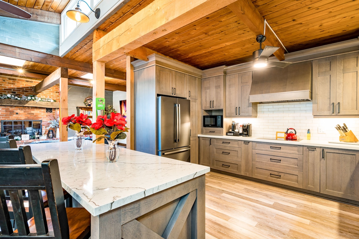 Parfait pour votre prochaine réunion de famille ou votre prochaine escapade en couple, notre chalet rénové peut accueillir jusqu'à 10 personnes et dispose d'une cuisine complète, de 2 salles de bain complètes, de 4 chambres et de 2 lits simples pliants, rénovés avec des luminaires et des meubles modernes. Le chalet est le mélange parfait de confort et de caractère. Les nouveaux luminaires et appareils électroménagers se marient à merveille avec des accents rustiques qui donnent une sensation de chaleur et d'accueil. Situé dans une communauté calme, nous demandons qu'il n'y ait pas de fêtes ni d'événements.