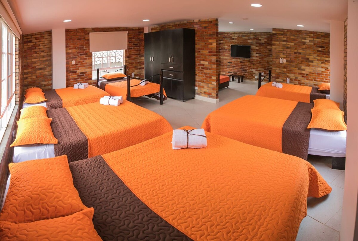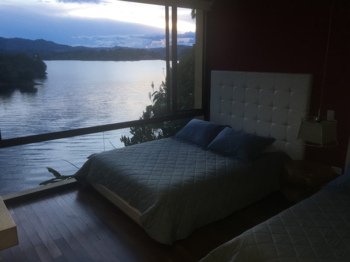 Cabine d'une chambre équipée de 2 lits doubles et de deux canapés-lits parfaits pour une petite famille ou un couple qui veulent profiter d'une pause romantique avec une vue magnifique sur le barrage de Guatapé. WiFi gratuit et télévision par câble dans la cabine. Il est situé dans un complexe clos avec un restaurant donnant sur le barrage (coût supplémentaire), un centre d'eau avec des services pour les activités aquatiques (coût supplémentaire), un solarium et des chaises longues gratuites sur la plage artificielle.