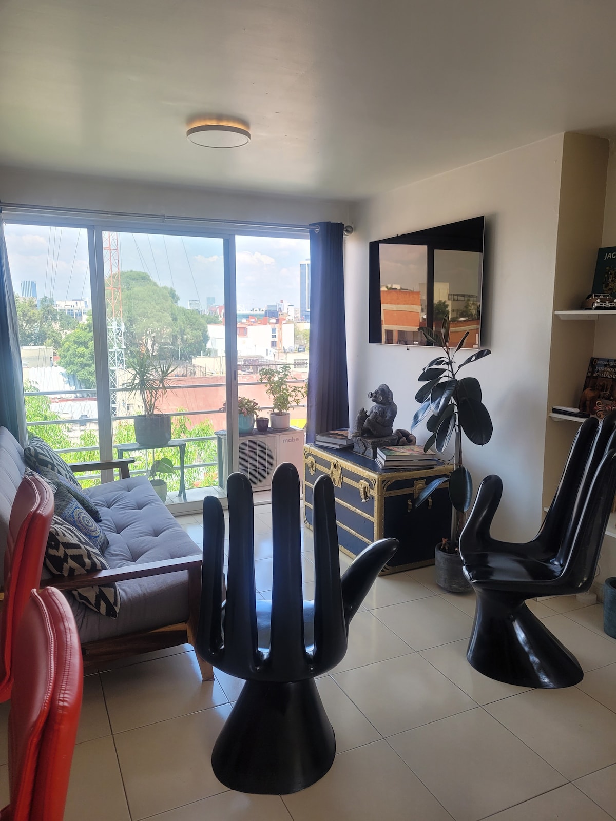 Profitez d'une expérience élégante dans cet hébergement central. Avec patio privé, pour que tu sortes prendre ton café du matin ou une cigarette avec tes amis. Nous vous offrons un séjour reposant et confortable. Nous sommes situés en face du WTC et du Pepsi Center. L'immeuble est très calme et se trouve à quelques mètres de sites tels que Walmart, Starbucks, Cantina la No 20, Dominos Pizza, Insurgentes, entre autres.