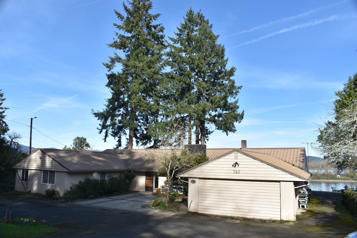 La maison flottante sur le fleuve Columbia offre une vue panoramique (balbuzards, pygargues et plus encore !) sur ce fleuve et ce pays merveilleux riverain. Que vous pêchiez, fassiez du bateau, du kayak, que vous vous détendiez, créiez ou observiez les oiseaux et la faune, cette péniche de 1 400 pieds carrés est l'espace idéal pour décompresser. Pendant que vous êtes confortablement installé à l'intérieur, les grandes fenêtres font entrer l'extérieur. Internet rapide, télévision en continu ou musique Apple, vous permettront de rester connecté au monde extérieur, mais pourquoi ne pas vous évader. Regardez les photos pour sentir le cœur de Batwater.