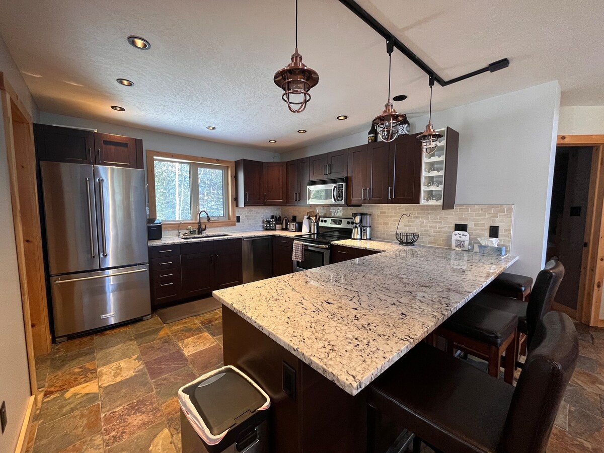Bienvenue au Bed & Apple Chalet ! Une maison de style chalet confortable sur 2,5 acres avec une vue imprenable sur Boulder Mountain. Située à seulement 4 minutes à l'ouest de Revelstoke, en Colombie-Britannique, et à 13 minutes de la station de montagne RMR. Doté de deux chambres au rez-de-chaussée et d'un loft de deux chambres. Chaque chambre possède sa propre télévision connectée avec câble. Deux salles de bains complètes avec sol chauffé. Cuisine entièrement équipée avec barbecue sur la terrasse arrière. Ce chalet dispose également d'un poêle à bois pour ces nuits d'hiver douillettes !