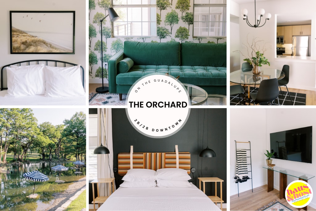 Bienvenue à The Orchard, situé au centre-ville de New Braunfels sur la rivière Guadalupe! The Orchard est un joyau élégant de 2 chambres et 2 salles de bain niché le long de la rivière Guadalupe. Dans le cadre de Cation on the Guadalupe, cette retraite moderne au deuxième étage combine des tons terreux, du papier peint inspiré du verger et une sophistication chaleureuse. Sortez sur votre balcon privé, parfait pour le café du matin ou les cocktails du soir! Remarque : ce logement est situé dans le bâtiment 1, face à la pelouse.