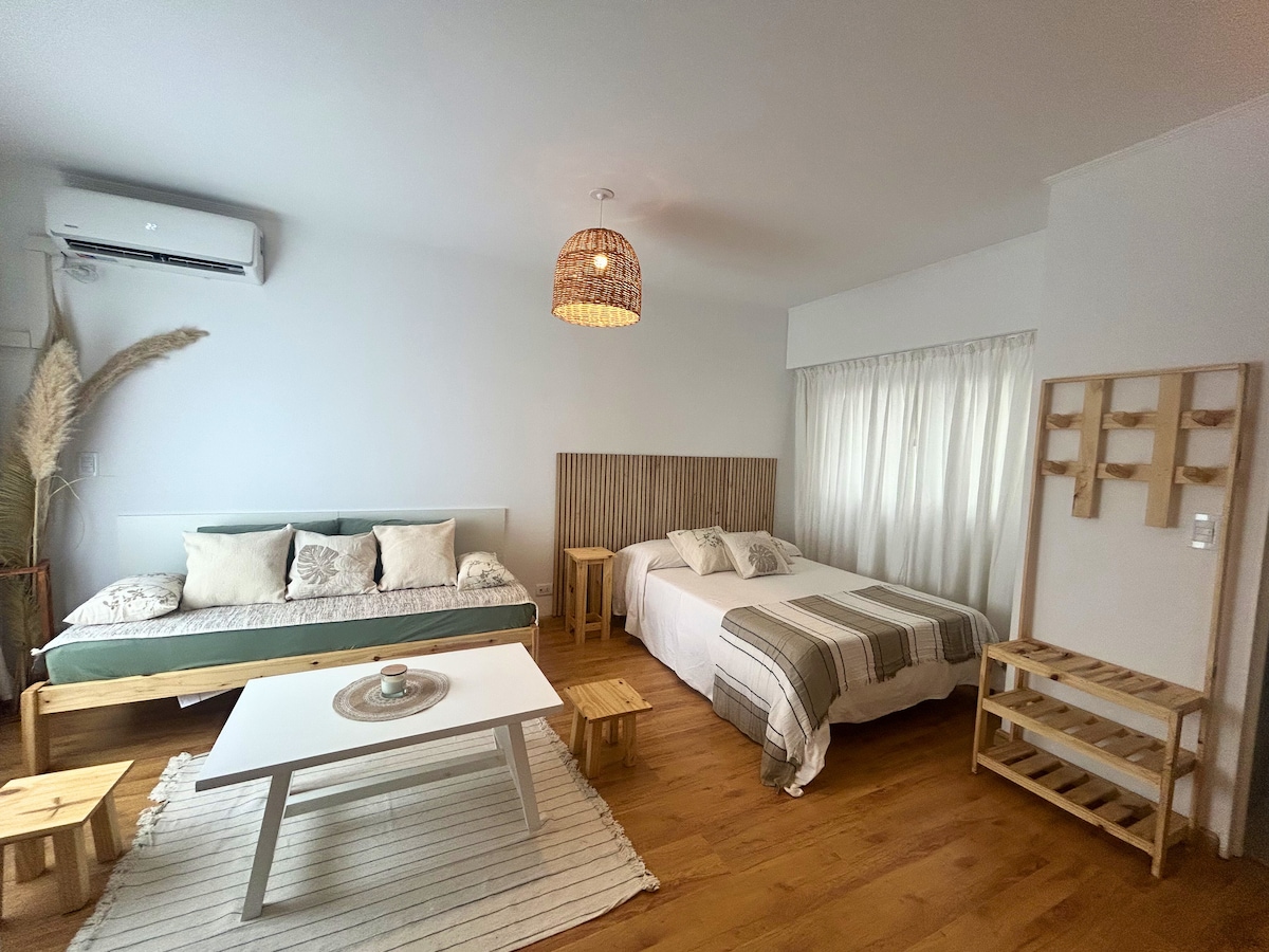Profitez de la simplicité de cet hébergement calme et central. Studio moderne et lumineux. Confortable pour 4 personnes. Avec un lit queen size et un canapé avec 2 lits simples. Un emplacement imbattable à deux rues du quartier chinois et à proximité du terrain de river. Cinémas, restaurants et cafés dans le même pâté de maisons. Une large offre gastronomique. Accès aux moyens de transport à proximité (train, métro et de nombreuses lignes de bus). Profitez de Buenos Aires depuis cet espace charmant !!!