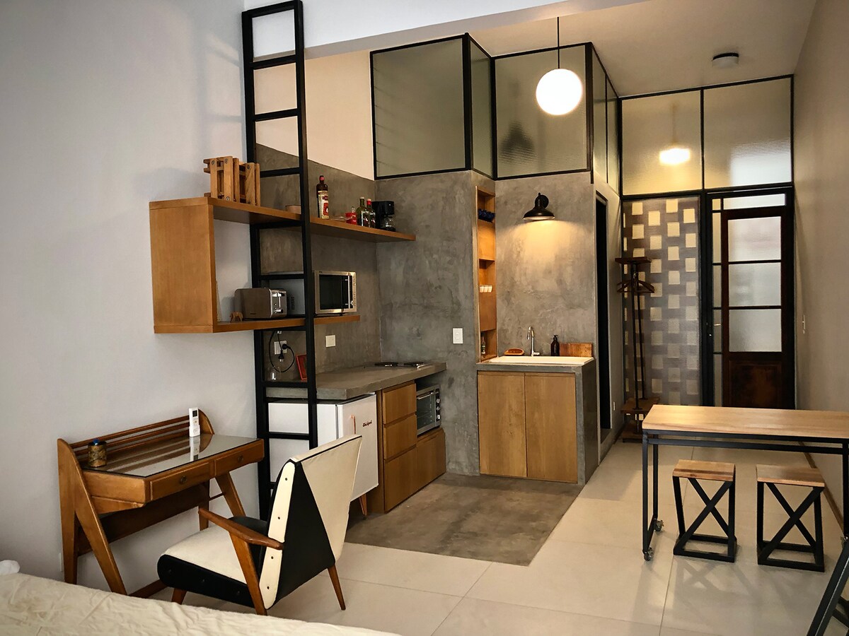 Studio charmant et confortable situé au premier étage par escalier d'un ancien bâtiment dans le quartier populaire de Balvanera. Entre éléments vintage et modernes, et œuvres d'art originales font de cet espace un lieu unique ! Profitez de la chaleur de cet hébergement calme, central et économique.