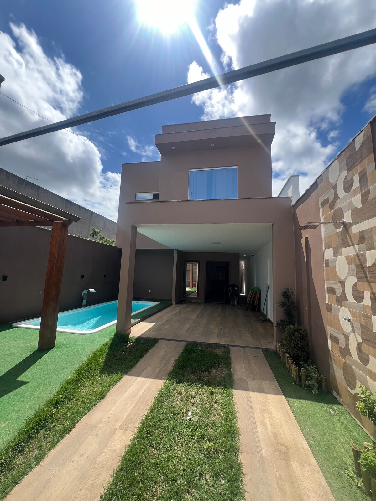 Détendez-vous dans cet espace calme et élégant. La ville dispose de nombreux hébergements avec un environnement intégré. Le vert est présent dans le jardin avec la petite piscine pour offrir confort, loisirs et tranquillité. Il y a tous les éléments pour offrir un séjour parfait. Proche des principales avenues de la ville. Espace de loisirs partagé avec deux maisons qui partagent un jardin, une piscine et un parking Je n'autorise pas les animaux. Je ne loue pas pour des événements.