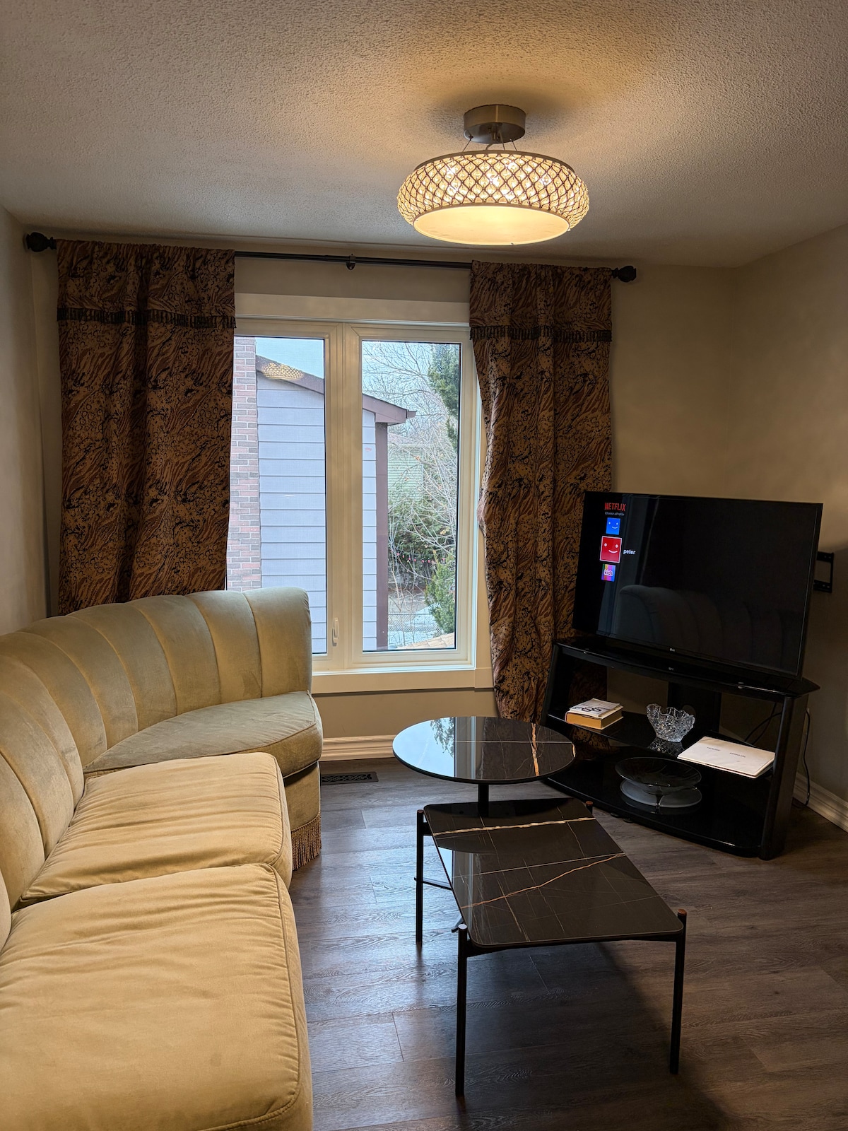 À propos de ce logement Tout le niveau inférieur avec buanderie (4 sur séjour de 7 nuits). WIFI, climatisé, récemment rénové. Hauts plafonds, beaucoup de lumière et grand salon. À 20 minutes de l'aéroport. À 5 minutes de l'épicerie/pharmacie. Comprend une kitchenette (avec option de plaque de cuisson). Stationnements gratuits. Télévision avec Xbox et PS + Netflix. (PSN et Xbox Game Pass inclus) Terrains de tennis de l'autre côté de la rue. À 15 minutes en voiture de l'Université York À 15 minutes de Wonderland et du centre commercial Vaughan Mills. À 30 minutes du centre-ville de Toronto.
