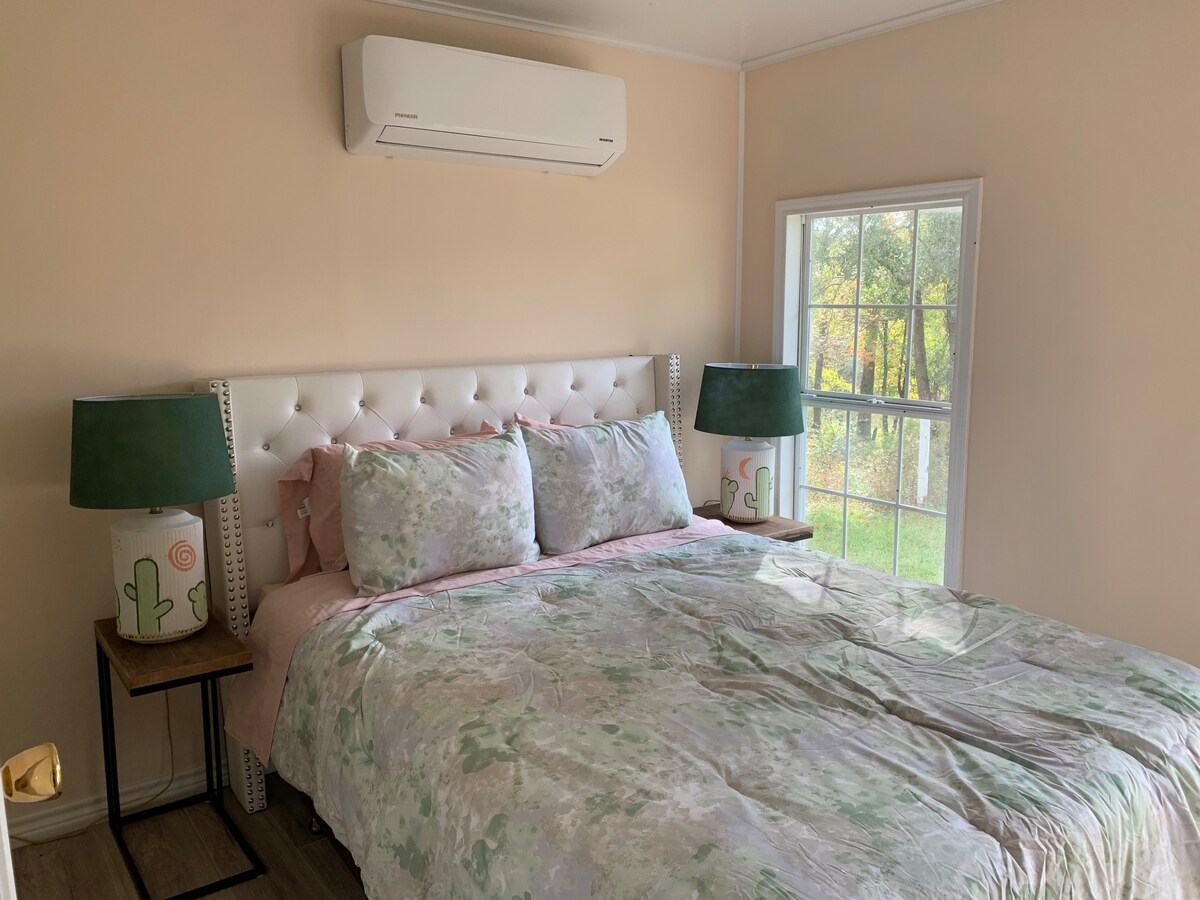 Maison d'hôtes paisible en bord de lac, avec pergola, balançoires octogonales pour adultes et patio privé. Dans une petite ferme avec des poules et des œufs frais. Le salon a un foyer confortable avec des fauteuils inclinables électriques. Notre maison d'hôtes d'une chambre dispose d'un lit queen size dans la chambre. Il y a 2 lits de camp ou un matelas gonflable queen size pour 2 autres personnes. Il y a un lave-linge/sèche-linge, un patio avec barbecue, une cuisine complète, meublé avec tout ce dont vous avez besoin pour cuisiner, y compris une friteuse, un micro-ondes et une casserole ! ! Renseignez-vous sur les réductions ! Venez profiter de la campagne !