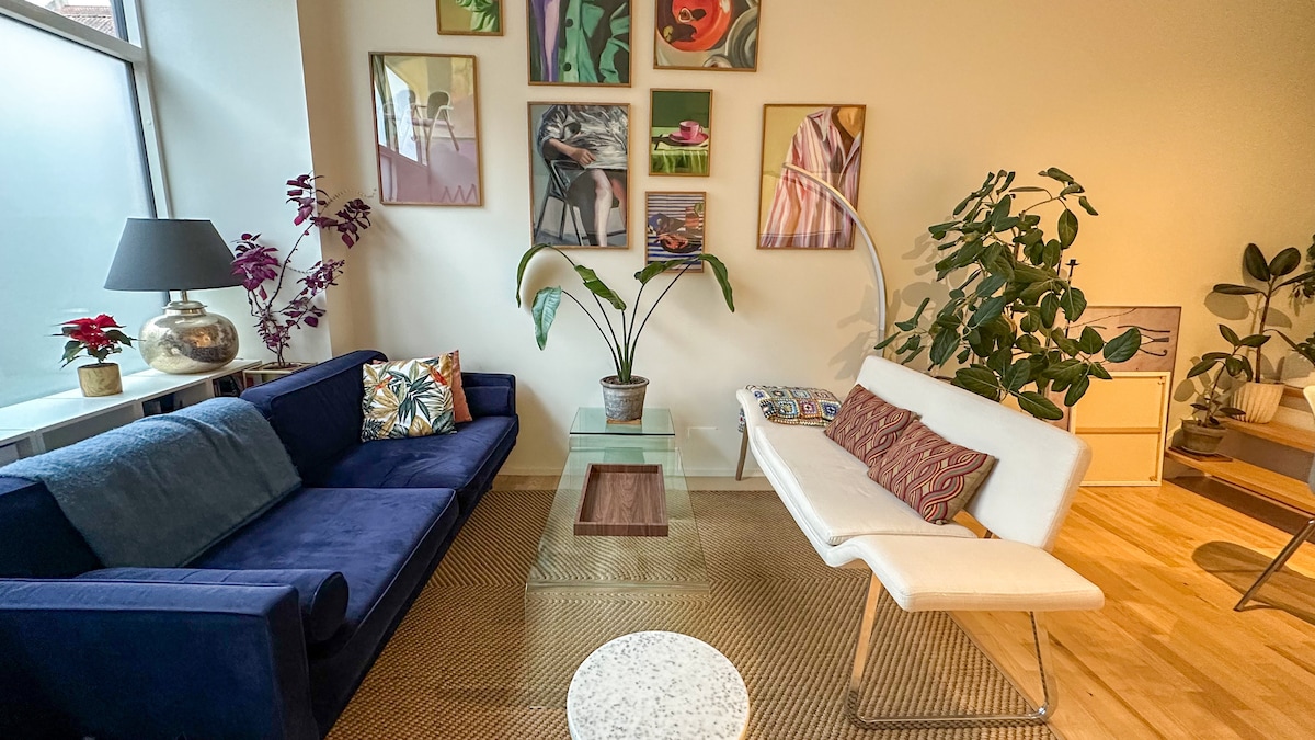 Découvrez Søboks, présenté dans le magazine Dwell : un appartement de centre-ville restauré pour 1 ou 2 personnes, situé au-dessus des lacs bien-aimés de Copenhague. En partenariat unique avec le galeriste local, Nordvaerk, découvrez des artistes danois émergents pendant votre séjour. Admirez le lever et le coucher du soleil depuis la terrasse verdoyante surplombant la ville. À quelques pas des meilleurs musées, galeries, restaurants de charme, boutiques et cafés. Piquez une tête dans les parcs verdoyants à proximité. Des « superhôtes » attentionnés de longue date sont disponibles pour répondre à vos questions sur Copenhague. Tusind Tak !