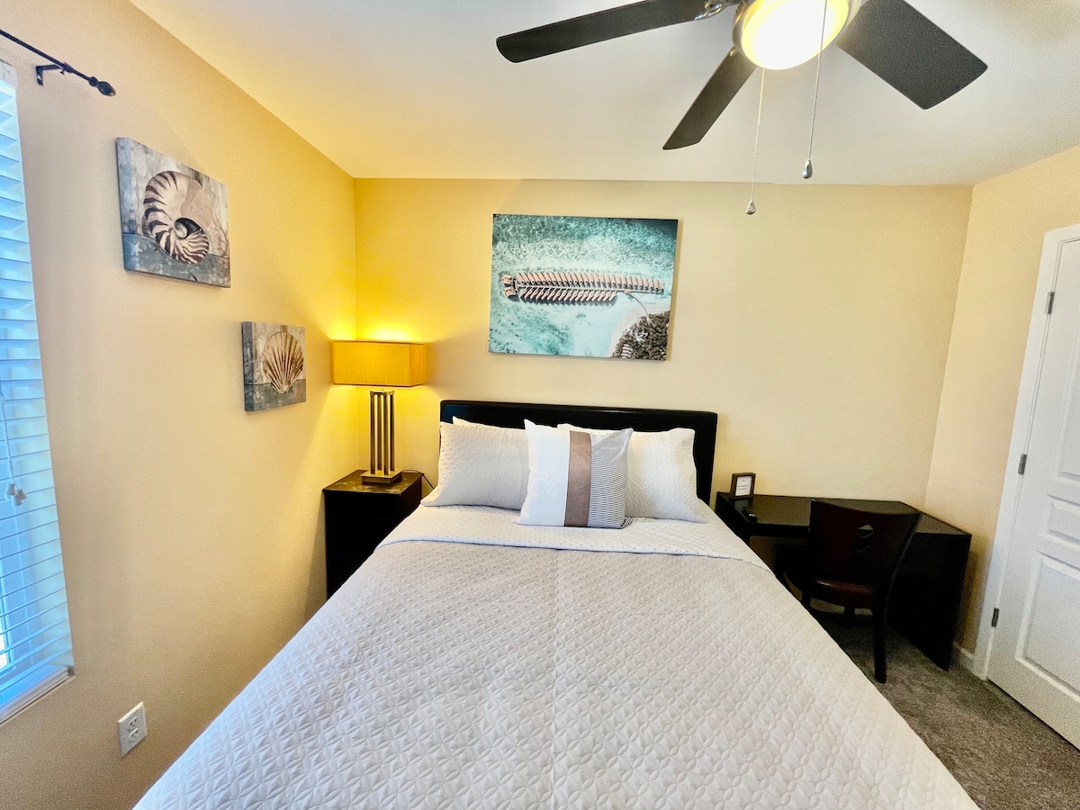 You’ll love this beautiful and cozy newer home located in a very safe and quiet neighborhood on the NW side of Visalia! Whether you are here to vacation, working, or simply passing by, this gorgeous and serene home is just what you need to kick back and relax after a long day. This is a 3 bedroom and 2 bath home. Master suite has a king size bed with a walk in closet and a master bathroom with tub and walk in shower. The other two guests rooms have a queen size bed.