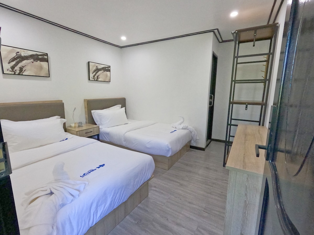 Chambre classique avec lits jumeaux dans un hôtel de Coron Town avec piscine
