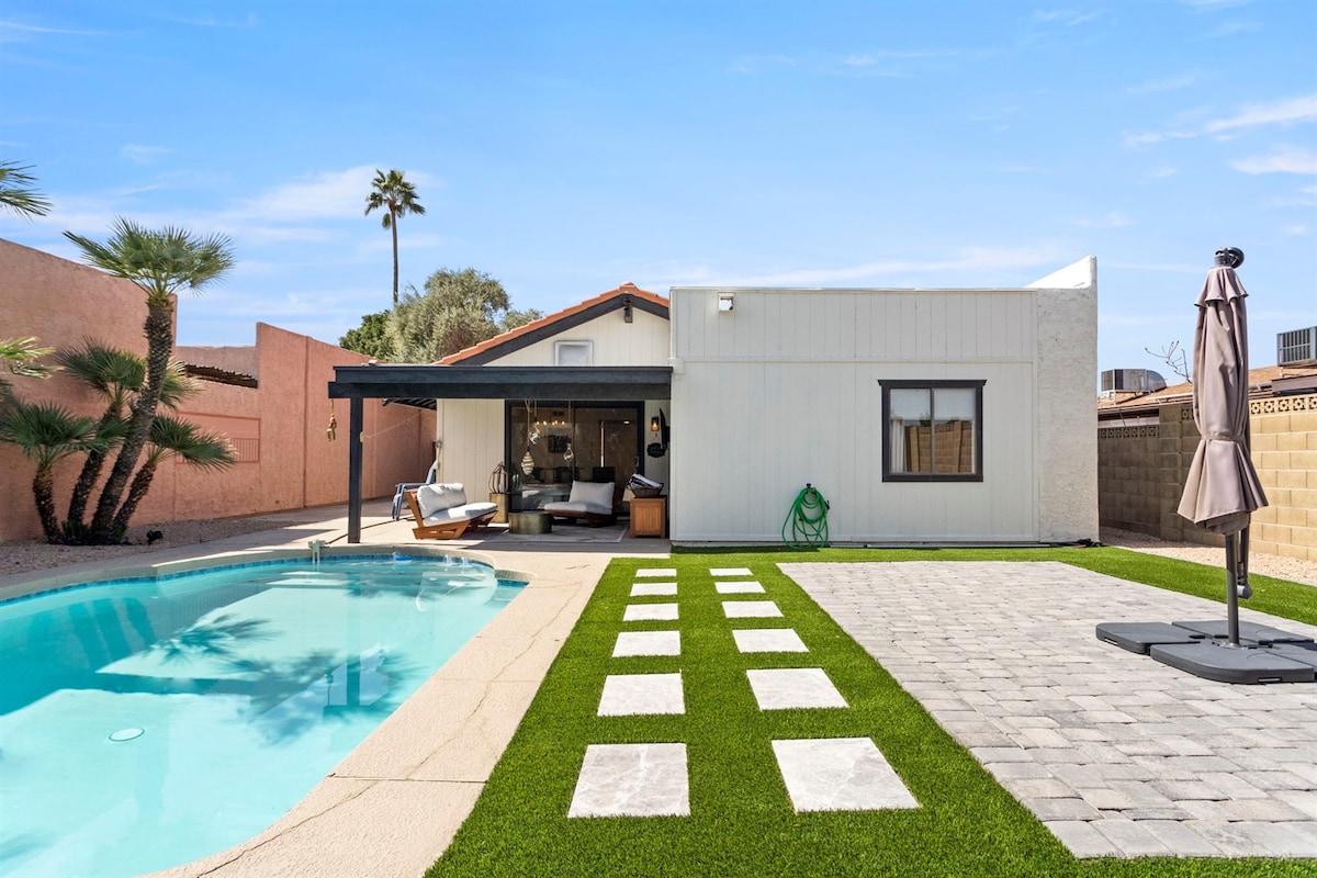 Magnifique, confortable, spacieux, plus de 2300 pieds carrés. Maison de ville entièrement meublée. Beaucoup d'espace pour se déplacer avec un salon et une salle familiale avec une cheminée à gaz ! Profitez du soleil de l'Arizona ou des belles nuits étoilées dans cette cour privée de style complexe hôtelier avec patio couvert, piscine de jeu et table de feu à gaz ! Comprend également une cour clôturée pour vos animaux de compagnie. Les animaux de compagnie sont les bienvenus ! 1 place de parking dans le garage. Super quartier ! À proximité d'excellents restaurants, de magasins et d'un accès à l'autoroute. AZ TPT#21500053
