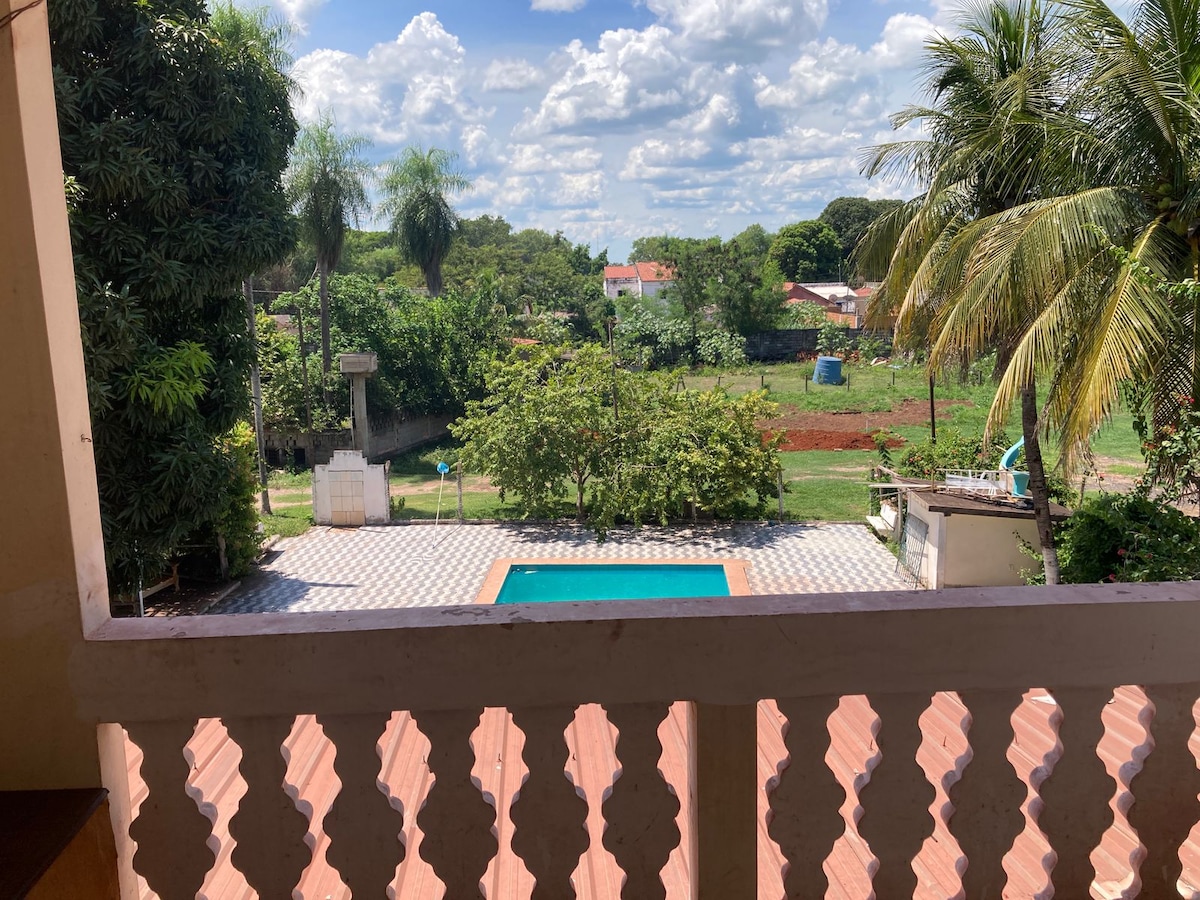 Esqueça de suas preocupações neste lugar espaçoso e tranquilo. Lugar com espaço para seu carro e barco. Acomodações para 8 pessoas. Quartos climatizados. Piscina. Escada para acessar os quartos. Fogão, geladeira, pratos, talheres, panela, micro-ondas, etc.