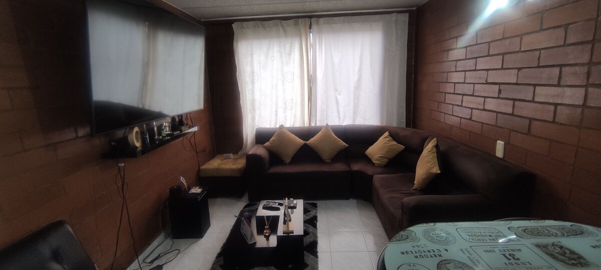🏡 Bienvenue au Refugio del Majuy ! 🌿 Un appartement confortable à Cota, à quelques minutes de Bogota. ✨ C'est l'endroit idéal pour se détendre et se déconnecter du bruit de la ville... 🌄🕊️ L'appartement dispose d'une cuisine équipée🍽️, de 2 chambres, 🛏️ une avec lit queen size et salle de bain privée🚿, et une autre avec deux lits simples ; les deux avec télévision, salle de bain 📺 sociale, 🚻 salon avec foyer, salle 🔥 à manger, 📶 buanderie 🍷 WiFi 🧺 et une belle vue panoramique…🌅 Nous vous attendons!😊🏡.