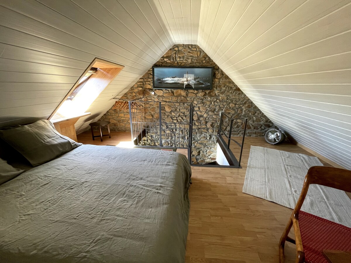 Logement unique et tranquille avec jardin. L'endroit est calme, 5 min en voiture au bourg et des commerces, avec accès à la plage à 400m. Appartement neuf et spacieux, composé d'une chambre avec lit 140, d'une grande pièce principale ouverte avec cuisine bien équipée( lave vaisselle, Nespresso...), d'une belle salle de bain. Le salon est équipé d'un canapé-lit. Internet/4G inclus. Lit parapluie, chaise haute et poussette à disposition. Le linge est fourni (sauf les serviettes de plage).