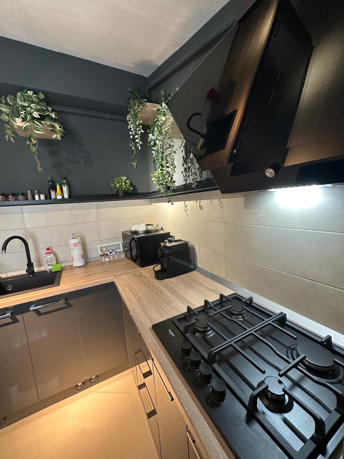 « L'élégance du confort » respire le raffinement et l'élégance. Décoré dans des tons cappuccino et noirs, cet appartement offre une atmosphère chaleureuse et accueillante. Les meubles minimalistes et les accents naturels créent un espace élégant et apaisant, parfait pour les voyageurs qui apprécient le design unique, futuriste et relaxant. Le point culminant de cet appartement est sa terrasse spacieuse, où les clients peuvent déguster un café le matin ou se détendre le soir avec un verre de vin froid, en savourant l'air frais.
