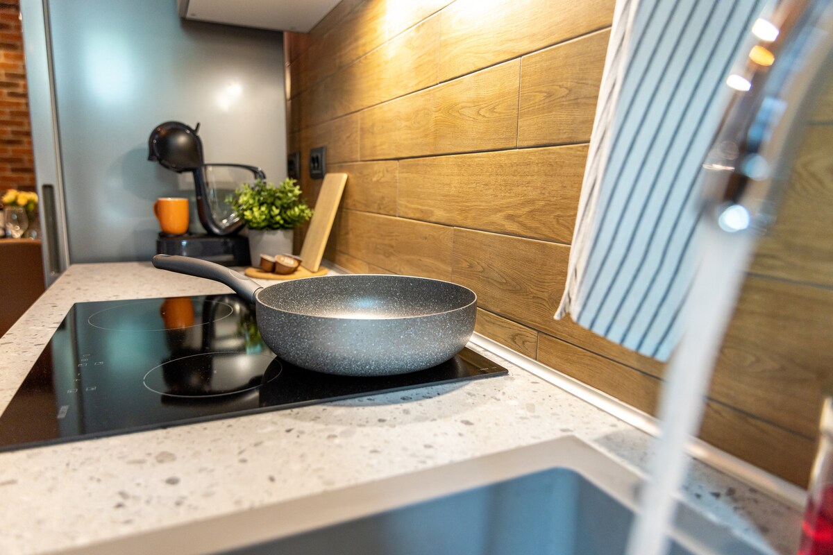 Découvrez UZINA6 – Powerplant, un studio industriel moderne à 7 minutes de la gare et à proximité du centre. Idéal pour les voyageurs d'affaires en transit ou les visites à des êtres chers, il peut accueillir 3 personnes et offre une chambre queen-size, un salon ouvert, une salle de bain à l'italienne, la climatisation, une connexion Wi-Fi rapide et une télévision intelligente avec Netflix, combinant un confort moderne avec une ambiance industrielle authentique.