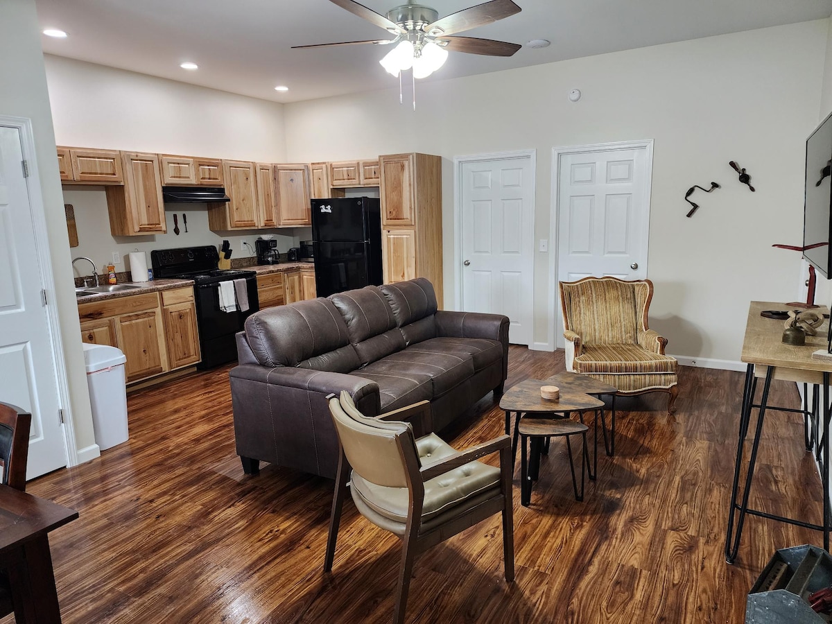 Cozy 1 Bedroom fully furnished apartment with own entrance that is in the basement of our beautiful Historic Home in Bluefield West Virginia. We live upstairs. Quiet, respectful guests only. Amenities include wifi, washer/dryer, fully stocked kitchen, snacks, drinks, coffee and tea provided Large dining area and spacious kitchen. Queen size pillow top bed with 1200 thread count sheets. Large L shaped sectional and big screen tv. With electric fireplace on those chilly nights.