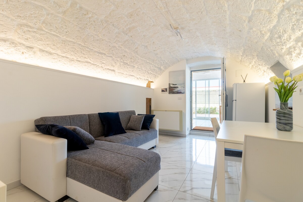 Située en plein centre, maison typique indépendante, très lumineuse et confortable avec des voûtes en berceau typiques en tuf, équipée d’une chambre, cuisine, salle de bain, deux balcons et une grande terrasse agréable Wi-Fi, climatisation. À seulement 20 mètres de la place principale Aldo Moro, à 50 mètres du cœur du centre historique et de la plage pittoresque de Lama Monachile. L'emplacement de l'appartement vous surprendra par son confort, son intimité et sa tranquillité
