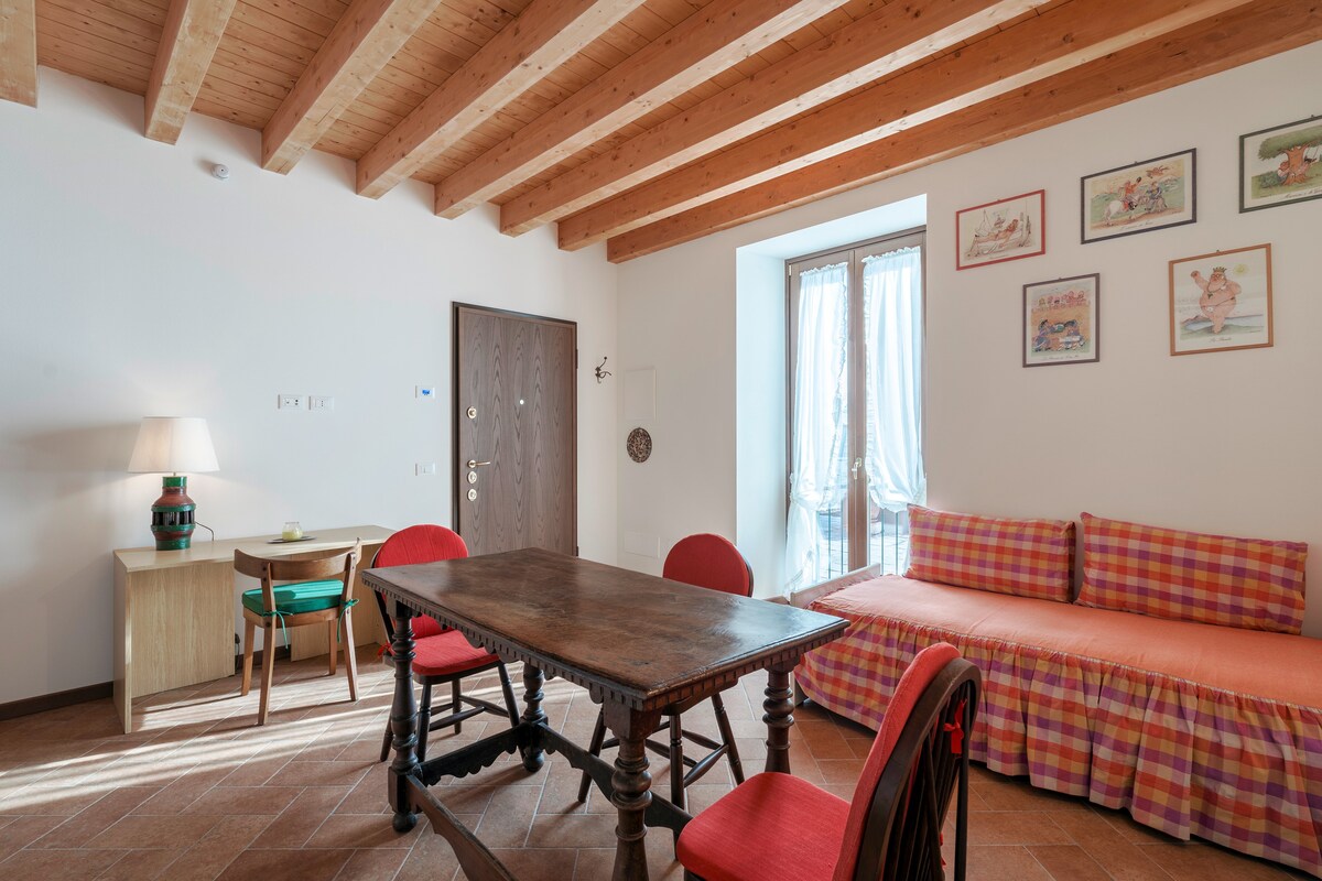 Deux-pièces calme dans le centre historique à 2 pas du Duomo. Situé dans une élégante copropriété. Équipé du confort nécessaire pour les longs séjours (wifi, tv, four lave-linge, sèche-linge, lave-vaisselle). Accès par un court escalier intérieur avec un grand sous-escalier idéal pour ranger les vélos, les valises, etc. Parking payant sous la maison et gratuit à 5 minutes à pied. Nous sommes Angela & Alberto et nous serons heureux de vous aider à rendre votre séjour le plus agréable possible.
