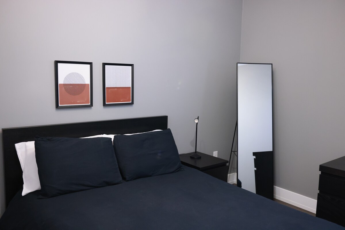 Détendez-vous et relaxez dans ce logement tranquille et élégant. Cet appartement au sous-sol à South Bedford offre les commodités les plus importantes avec classe. Le coin salon à aire ouverte est niché entre la salle à manger et la cuisinette équipée. La chambre est équipée d'un grand lit confortable, d'un coin bureau et d'un miroir avec des armoires. La toilette est équipée de capteurs automatiques et d'un mécanisme de chasse d'eau écoénergétique. Enfin, une thermopompe aide à modérer les températures dans l'appartement toute l'année.