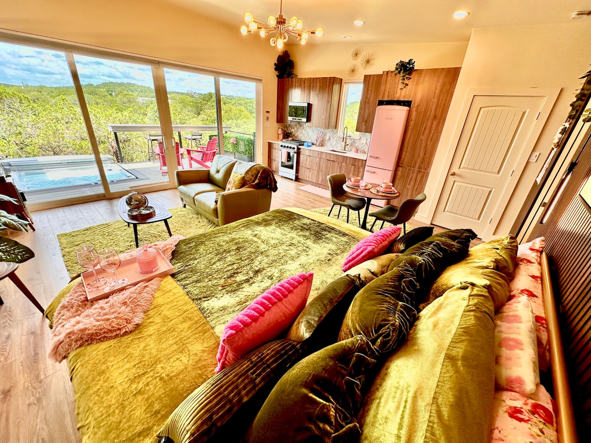 • Attribué à Airbnb : 1 % des logements les plus convoités et « Favoris des voyageurs ». • À 12 minutes de La Cantera, The Rim et Fiesta Texas. À 25 minutes du centre-ville/Riverwalk et de SeaWorld (circulation en attente) • Détendez-vous dans le spa et profitez des étoiles et des planètes lors d'une nuit claire sur les collines • Avoir un rendez-vous dans la ville pittoresque de Boerne à seulement 15 minutes. •Détendez-vous dans le spa et profitez des étoiles et des planètes lors d'une nuit claire sur les collines. Les cerfs et la Turquie sont souvent vus dans la vallée en contrebas. Profitez de votre café sous la terrasse couverte.